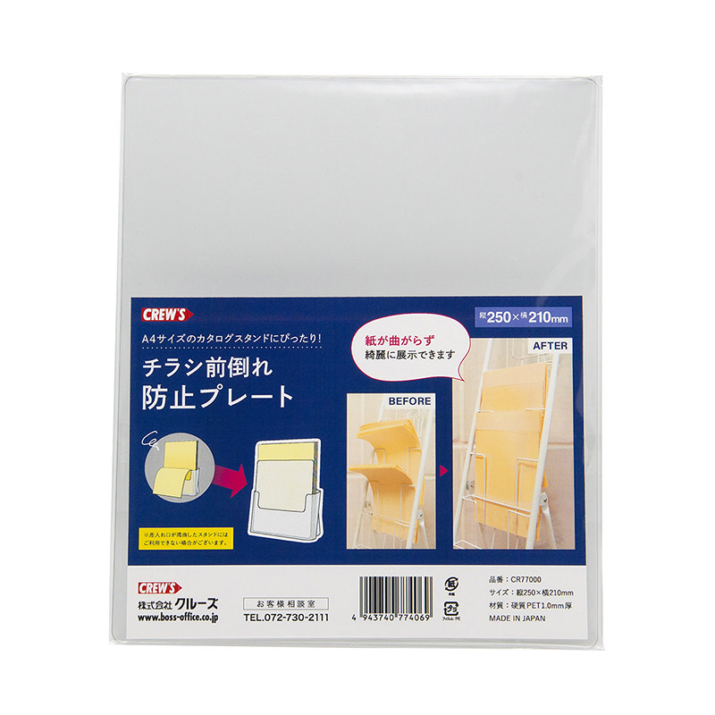 チラシ前倒れ防止プレート